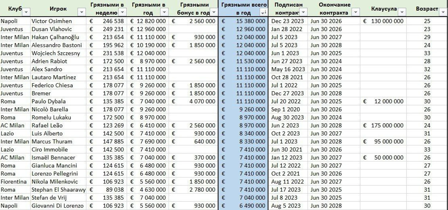 А если говорить о разборе зарплат Серии А, то я сделал очень поверхностный обзор и дальше буду углубляться в финансовую деятельность клубов в Италии и других чемпионатах.
