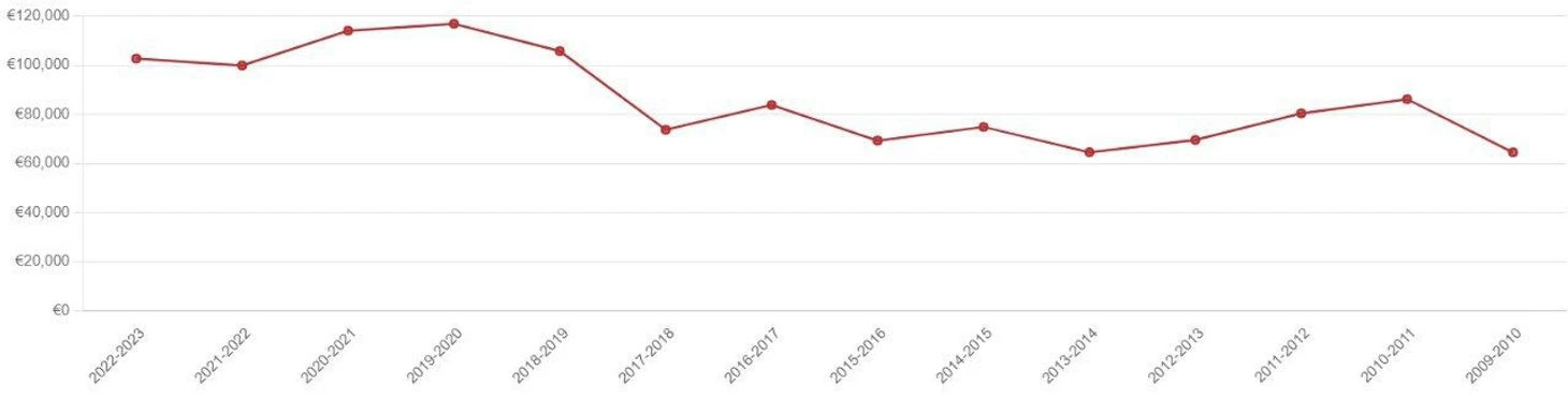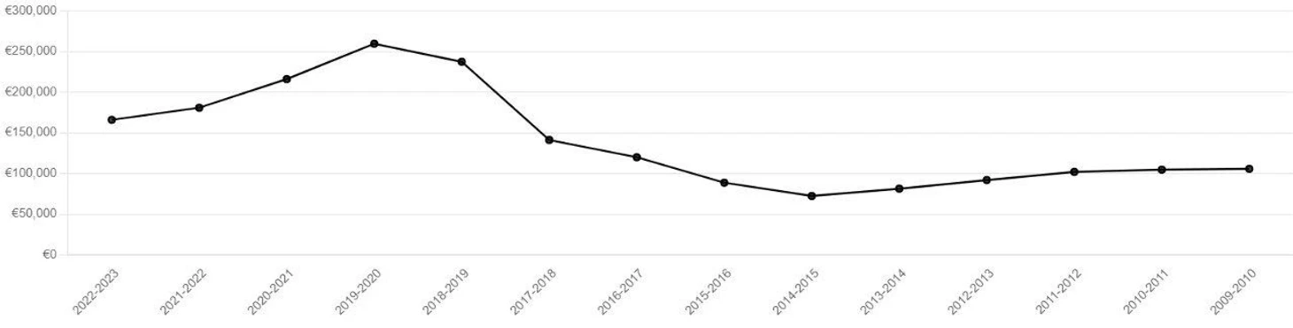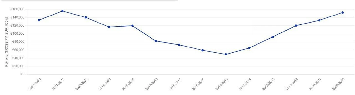 Динамика изменения зарплаты «Ромы». Здесь мы видим умеренное равновесие в последние годы.