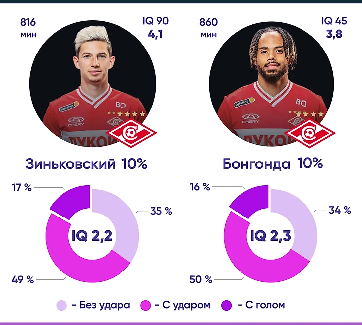 В пользу Зиньковского говорят, как показатель голевого IQ (6,2 против 5,7), так и доля IQ голевых атак в общей массе совершенных через АВП действий (17% против 16%).