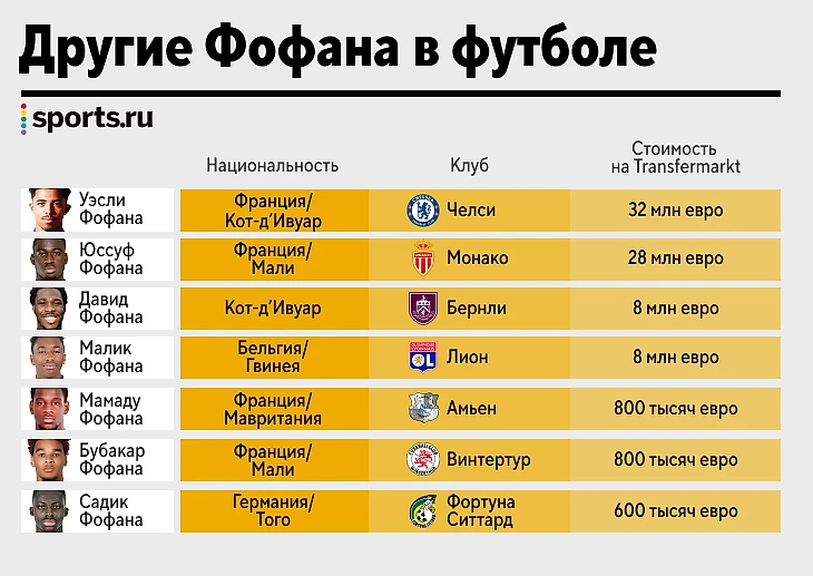 Всего на Transfermarkt больше 200 футболистов с фамилией Фофана! Мы взяли самых заметных.