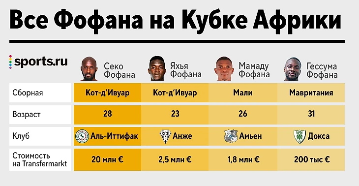 • Всего на Кубке Африки четыре Фофана! Все вышли из группы, но двое уже вылетели.