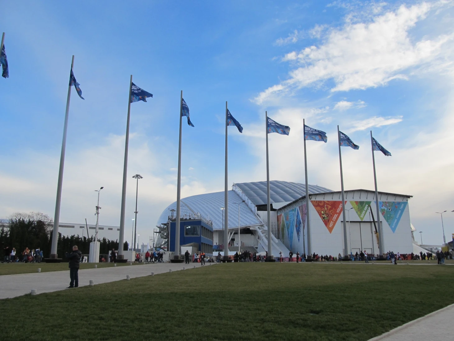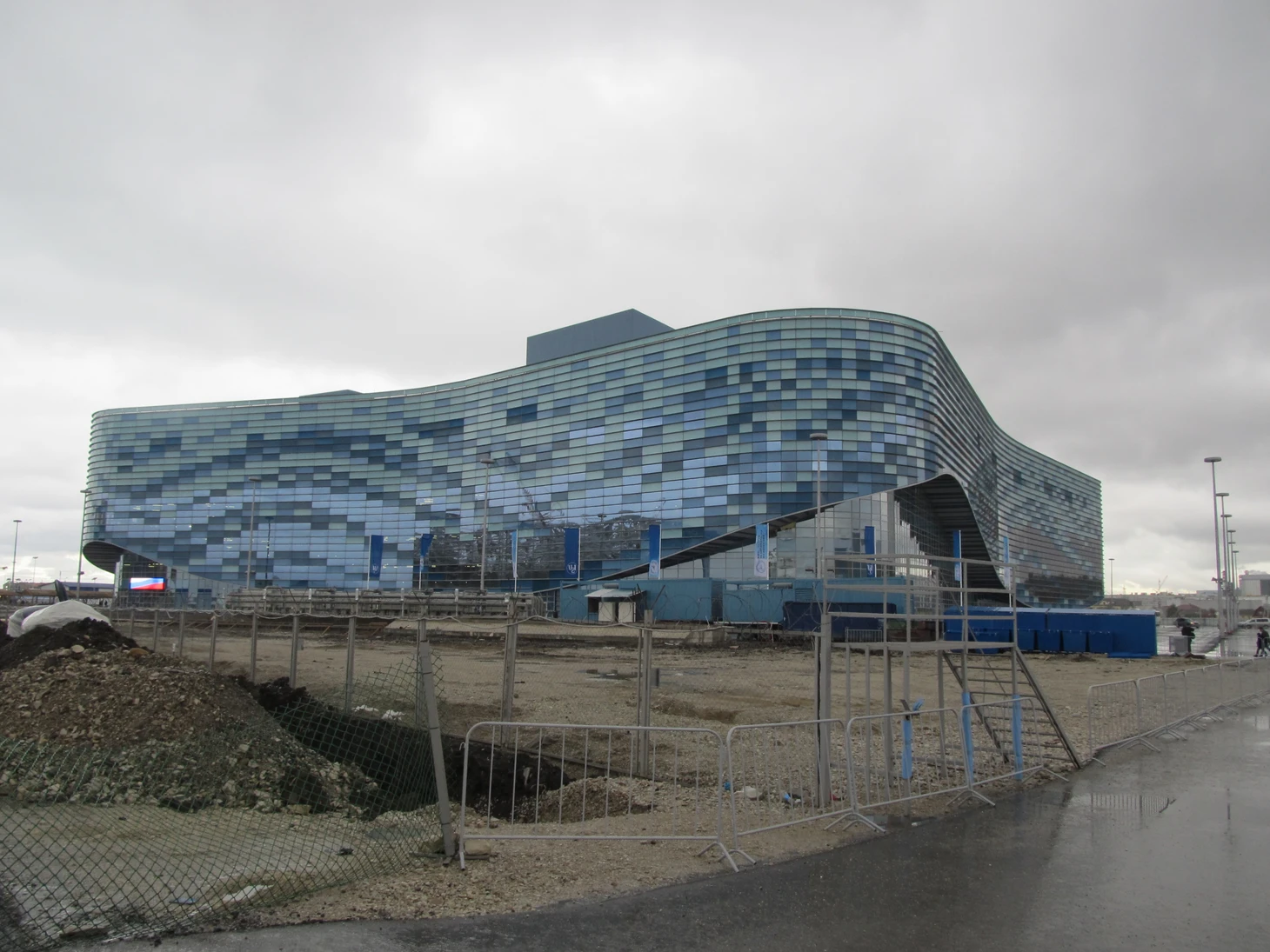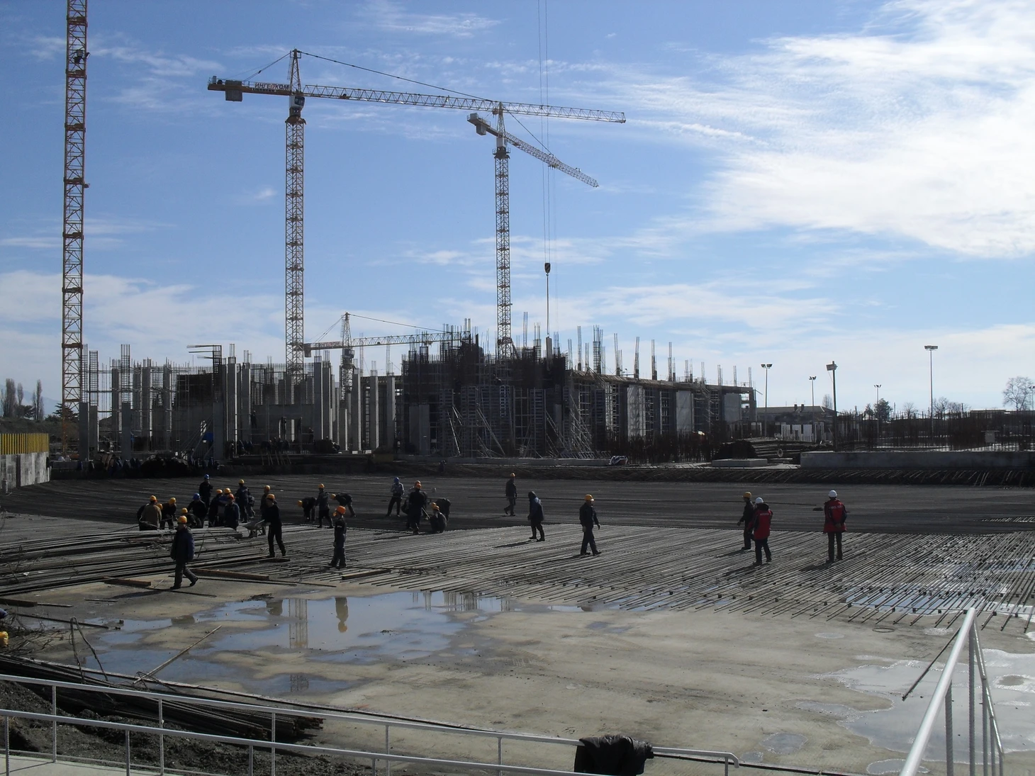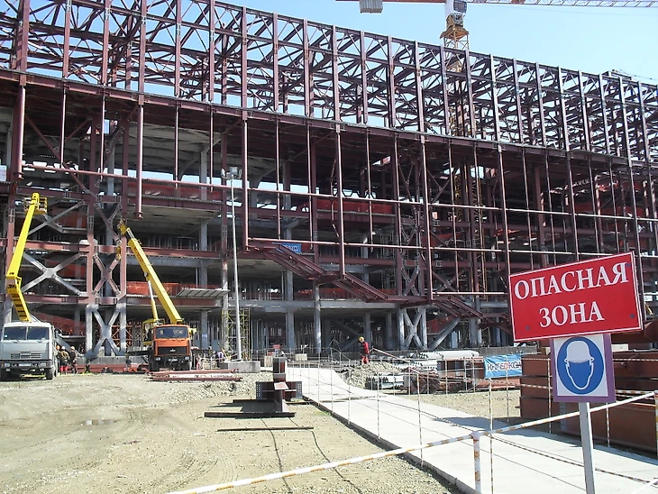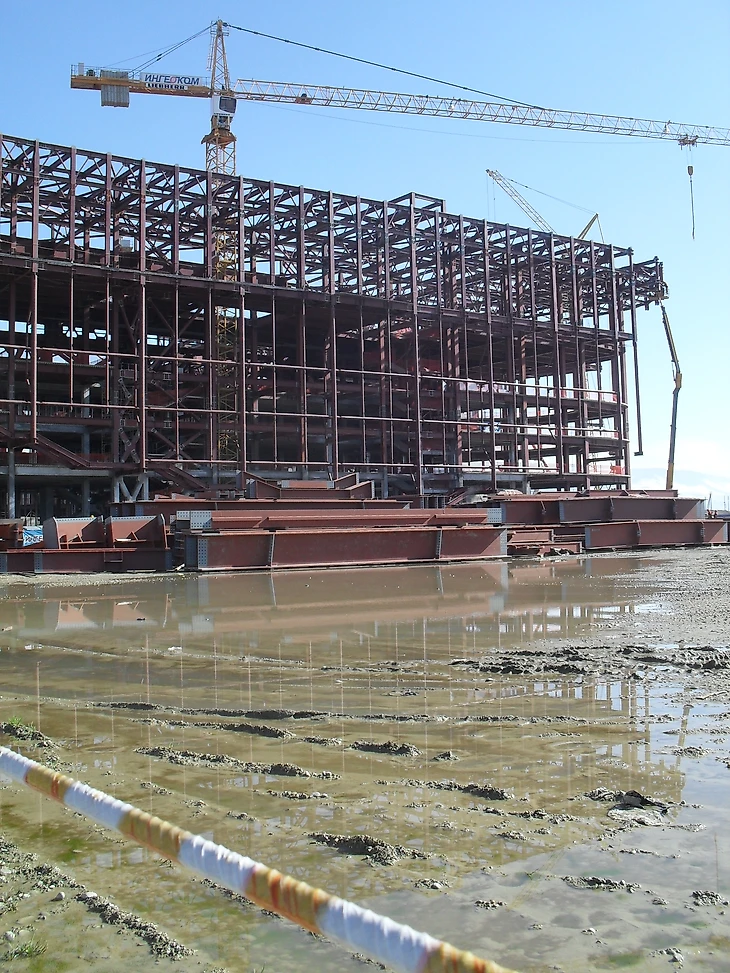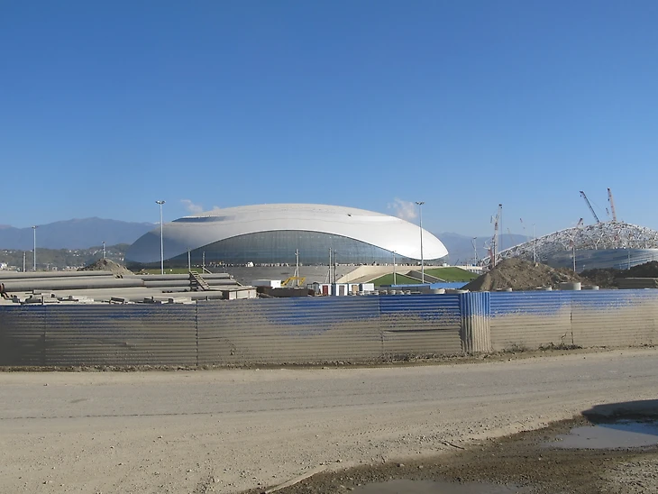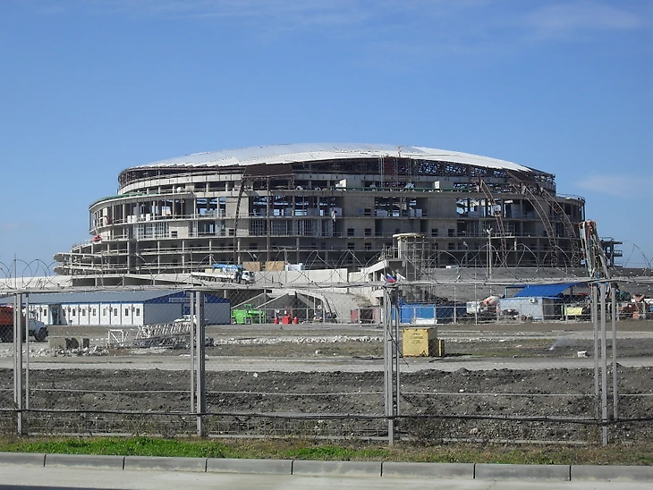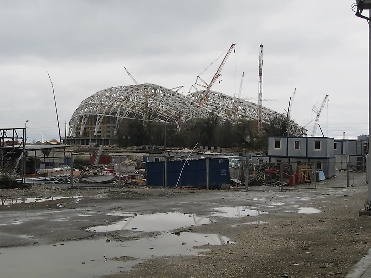 Декабрь 2012 года. Часть дворцов уже построены, каркас «Фишта» ждёт покрытия, но работы еще хватает.