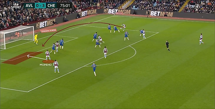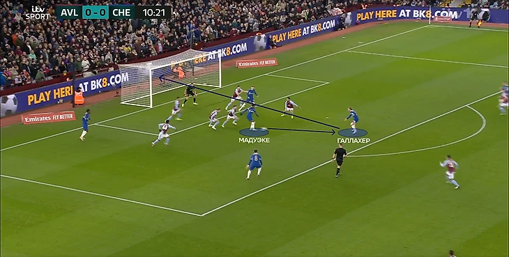 Отмечу, что при любом простреле или навесе от Гюсто первыми на мяче были бы игроки Челси – Палмер забегал на ближнюю штангу, а Чилвелл на дальнюю.