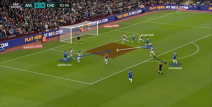 Астон Вилла стала действовать более компактно в обороне, не давая Челси быстро разыграть атаку.