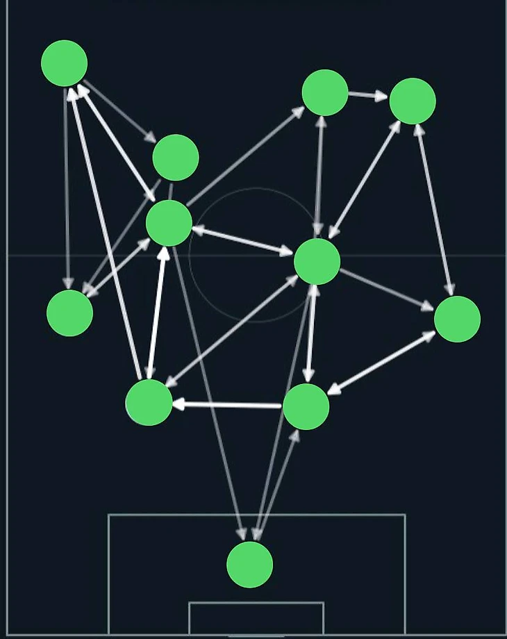 А теперь вопрос для любителей тактики и тех, кто смотрит футбол сквозь призму построений геометрических. Какая команда и в каком матче изображена на этой схеме усредненных позиций и передач.