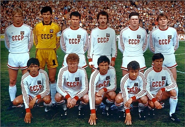 1989г. СССР - ГДР. Сб. СССР, слева-напр, сидя: Добровольский - О.Кузнецов - Протасов - Заваров - Рац. Стоя: Михайличенко - Дасаев - Литовченко - Алейников - Лужный - Горлукович. В условиях уже наступающего Объединения Германии, команда ГДР психологически была уже явно не в самом своём боеспособном и «мотивированном» состоянии...что, конечно же, очень сыграло тогда на руку команде СССР...