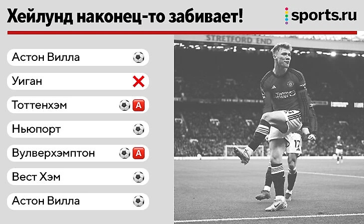 В матче против «Виллы» «МЮ» горел 0:2, но перевернул игру после перерыва: Гарначо дважды забил в контратаках, а победу вырвал Хейлунд – подкараулил отскок в штрафной после углового и забил победный ударом от штанги. Празднование получилось максимально эмоциональным. Хейлунд наконец выдохнул.