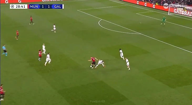 Ответ Хейлунда – убрать всех троих парой замахов и отдать мяч свободному Рэшфорду.