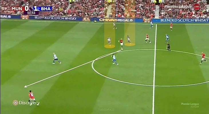 Старт карьеры в «МЮ» получился тяжелым. Несмотря на впечатляющую результативность в ЛЧ (пять голов в шести матчах), в АПЛ Хейлунд молчал. Мы разбирали проблемы атаки «МЮ» в 2023-м, сейчас коротко напомним, что именно не получалось у Расмуса: ● Хейлунд практически не получал мяч – на него не пасовали, из-за этого он опускался за мячом в центр поля;