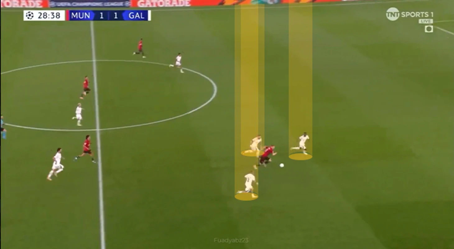 4. Матч ЛЧ против «Галатасарая». Хейлунд стягивает на себя сразу трех соперников. Как выбираться из под такого прессинга?