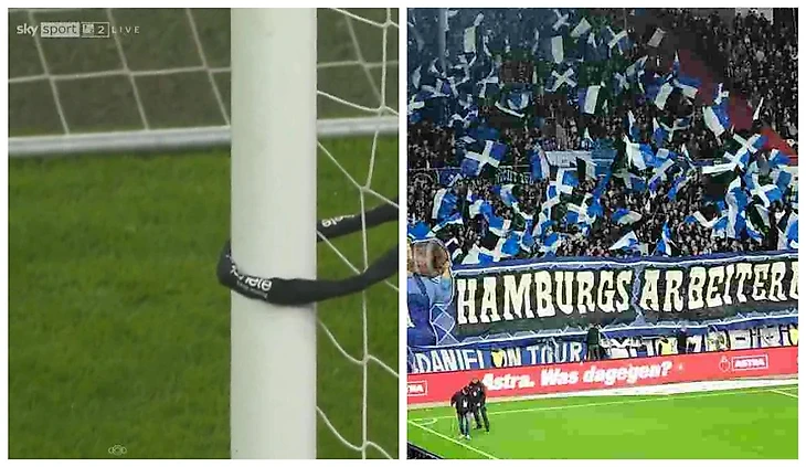 Сегодня во время матча Второй Бундеслиги между «Гамбургом» и «Ганновером» (3:4) фанаты хозяев устроили дерзкий перфоманс. Несколько болельщиков во время перерыва спокойно пробрались к воротам и приковали к воротам шесть замков, по три к каждой стойке.