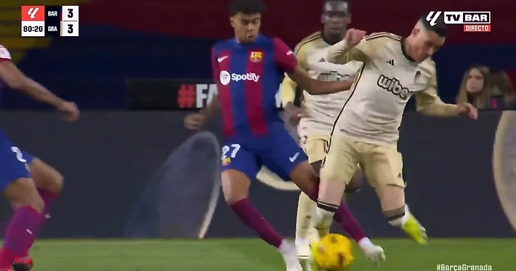 На 79-й «Барса» снова сравняла, но гол Фермина Лопеса отменили: в предыдущем эпизоде Иньиго Мартинес забрался в офсайд. «Гранаду» хватило лишь на две минуты: на 80-й Ламин Ямаль оформил дубль шикарным ударом из-за штрафной после собственного же отбора. Зарядил из-за штрафной!