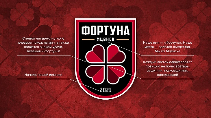Эмблема была переработана с учетом особенностей игроков команды. Добавили немного яркости и «глазастости», вместе с чем сохранили используемые красно-черно-белые цвета. За основу логотипа было взято стилизованное изображение четырехлистного клевера — знака удачи и фортуны.