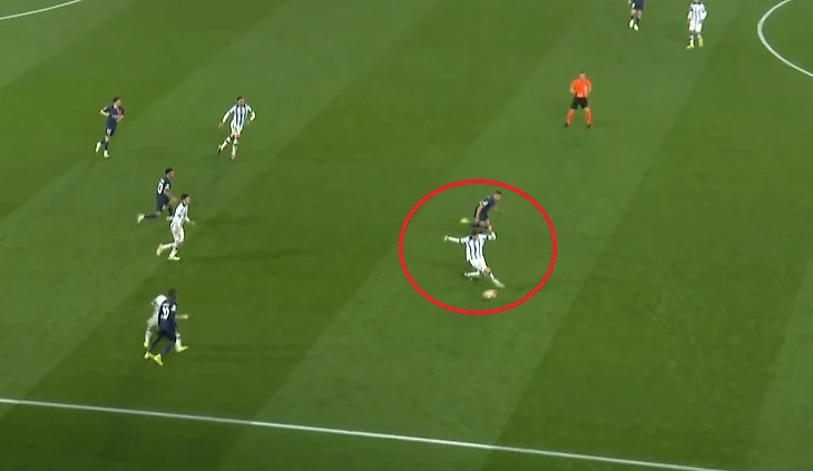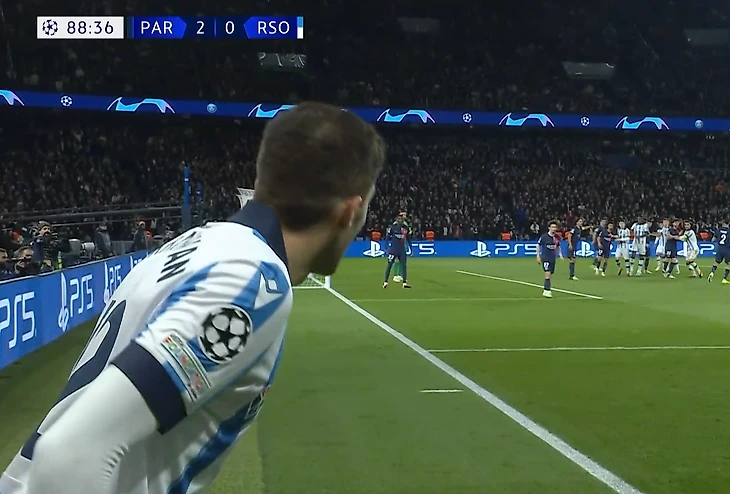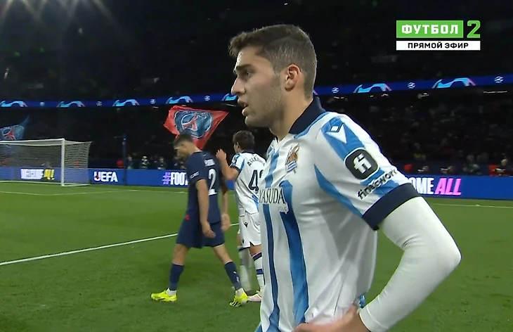 Вскоре россиянин попытался развить атаку через короткий пас на Андре Силву, но «Сосьедад» так неудачно разгонялся, что мяч дошел до собственного вратаря.