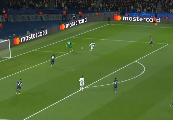 Сразу после этого «ПСЖ» забил, прорвавшись по противоположному от Захаряна флангу. По ходу этой атаки Арсен все время оглядывался на Хакими, чтобы не пустить его за спину, но Брэдли Барколя помощь Ашрафа не понадобилась, он все сделал сам.