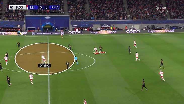 Контратаки «Лейпцига» через центр – естественная угроза в любом матче. Каждая потеря «Мадрида» трансформировалась в попытку быстрого выхода.