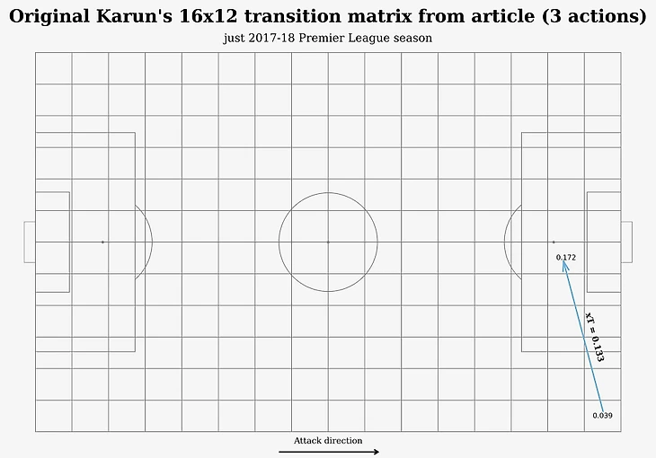 2) В атаках, завершившихся ударами, мы можем оперировать только базовыми метриками xG, xA и пытаться транслировать итоговое значение на всех участников (так считались такие метрики как xGChain и xGBuildup). xT позволяет значительно более гибко оценивать действия в сравнении с упомянутыми показателями. (за деталями сюда)