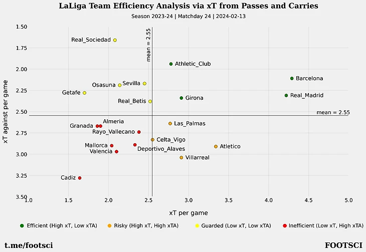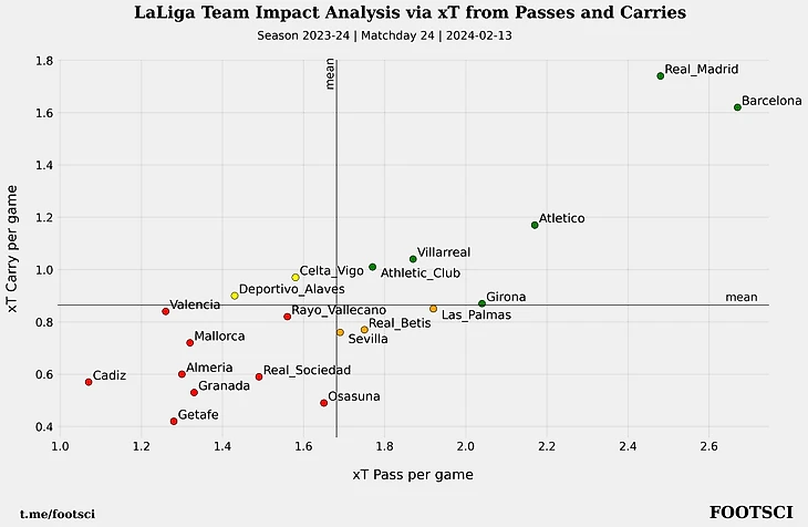Барселона и Реал Мадрид наиболее эффективные в лиге (xT diff: 2.18 и 1.91)