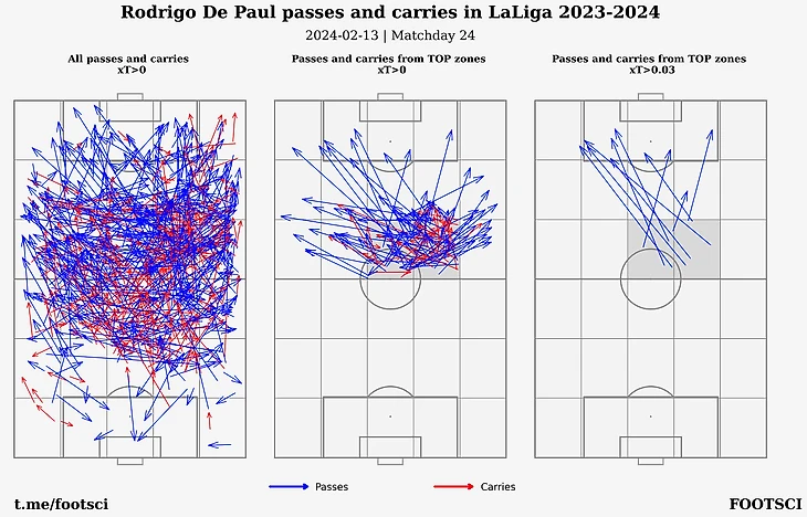 Теперь посмотрим на двух игроков, являющихся лучшими сразу в двух зонах центральной части поля. Начнем с Де Пауля.