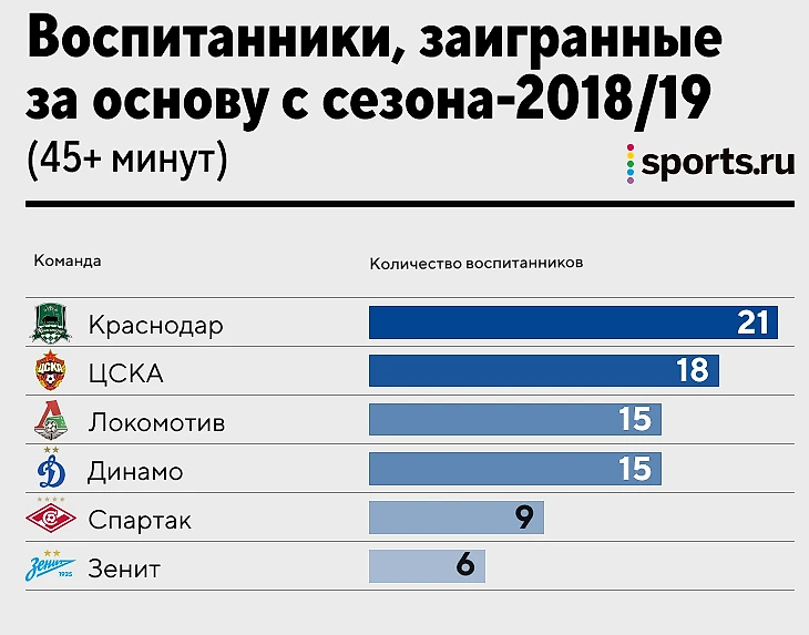 Кто из топ-клубов РПЛ доверяет воспитанникам? «Краснодар» лидирует, «Зенит» отстает