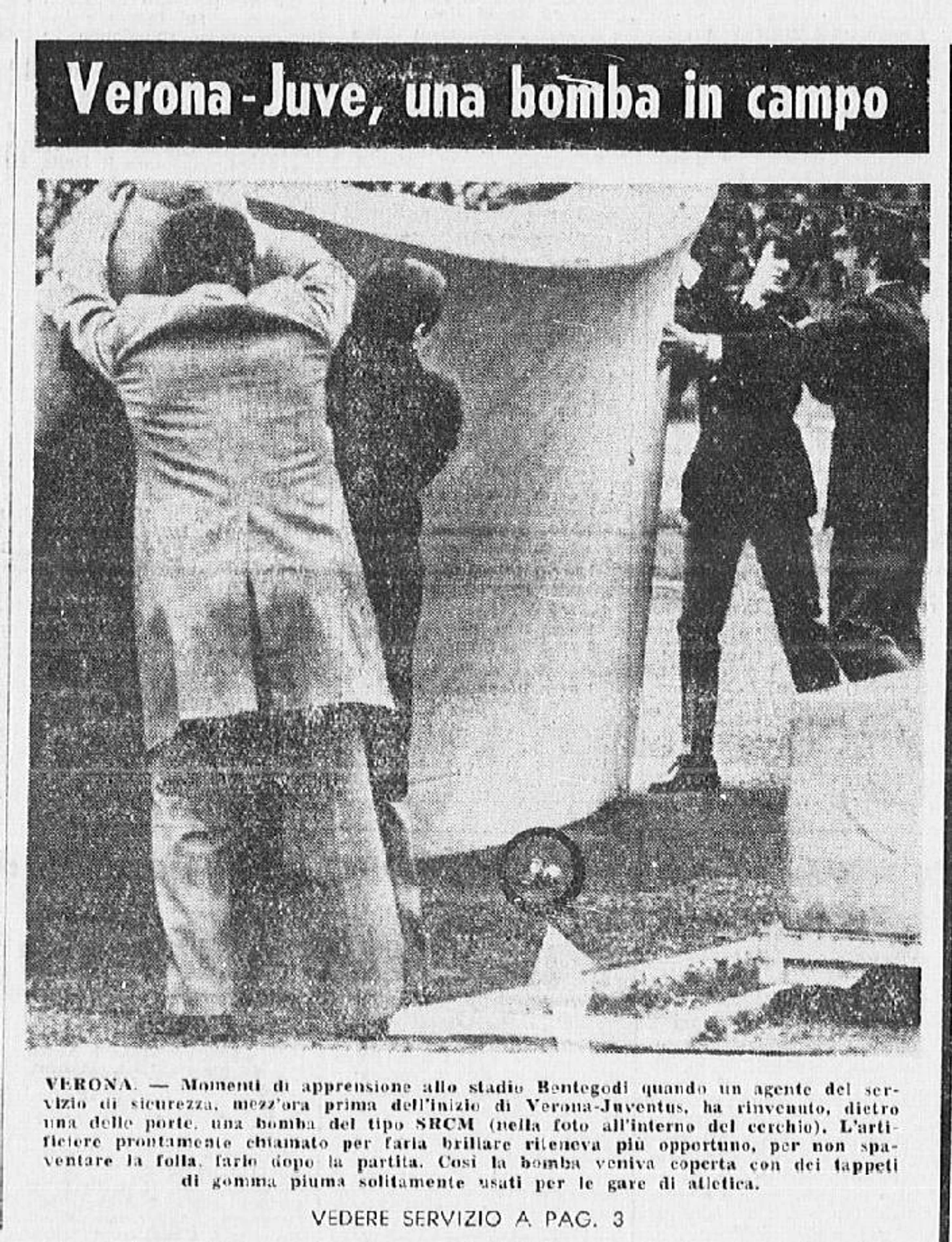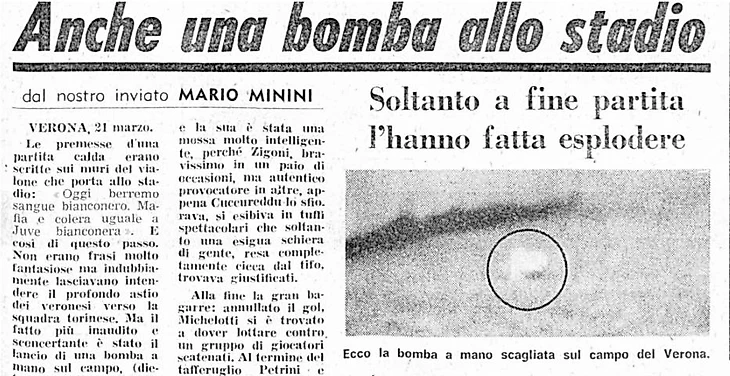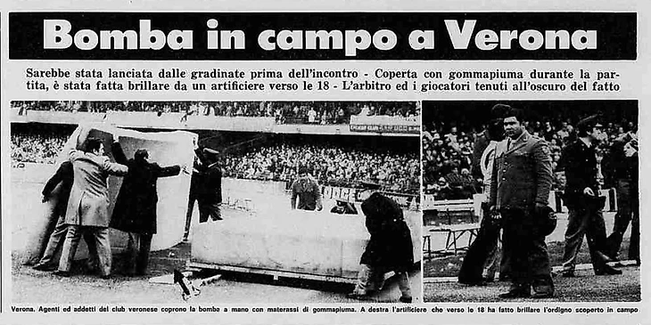 Когда футбол отходит на второй план. 20 марта 1977 года «Верона» и «Ювентус» сыграли матч рядом с брошенной гранатой