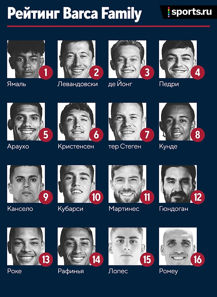 3. Френки де Йонг – теневой герой матча. Пасовал с точностью в 94%, сделал 3 выноса, 5 отборов и 1 перехват. Игра голландца в прессинге подарила «Барсе» несколько опасных моментов, которые могли завершаться голами, если бы не безалаберность нападающих. 2. Роберт Левандовски – автор победного дубля. Поляк улучшает игру и забивает важные голы, но все еще не так хорош, как нам хотелось бы. 1. Ламин Ямаль – молодой талант соорудил оба гола для «Барсы» и в свои 16 лет выглядел самым зрелым игроком в атаке.