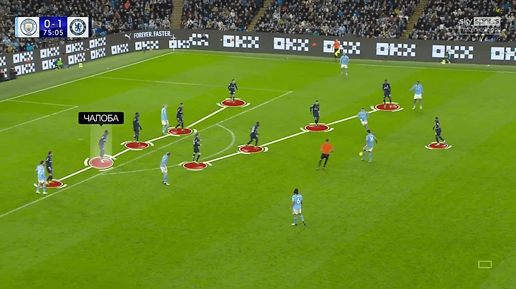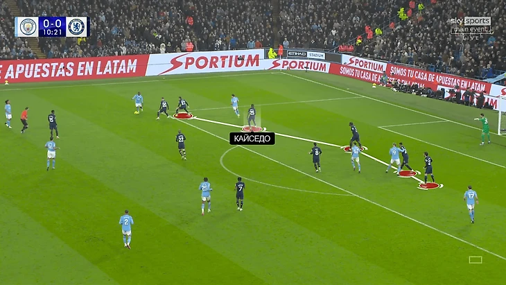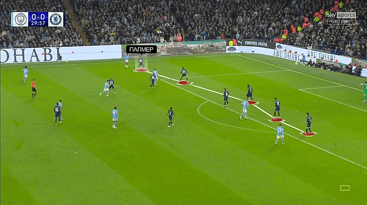 В общей сложности игроки «Челси» отдали четыре передачи вразрез. Для «Сити» – повторение антирекорда сезона, столько же было только в трех матчах. Хорошо показывает, с какими трудностями сталкивались хозяева. Защита слишком часто оказывалась жертвой оголенной опорной.