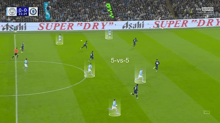 Более того, прием Почеттино/Терзича стал для «Челси» отправной точкой для собственных контратак. Лишив «Сити» привычных козырей, гости вынуждали хозяев принимать неподготовленные решения. Они вели к потерям, которые «Челси» трансформировал в контратаки. Из-за проблем «Сити» в опорной их было намного легче развернуть.