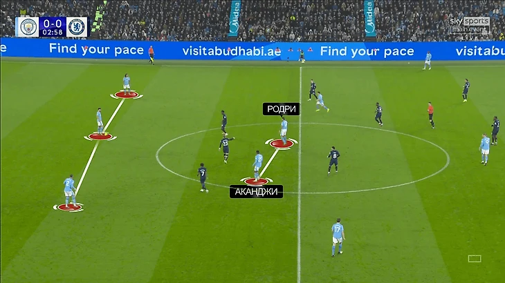 Например, при розыгрышах мяча к Родри из центра защиты поднимался Мануэль Аканджи – прямо как Стоунз в прошлом сезоне. Периодически швейцарец подменяет партнера. Матч с «Челси» – еще один семинар: