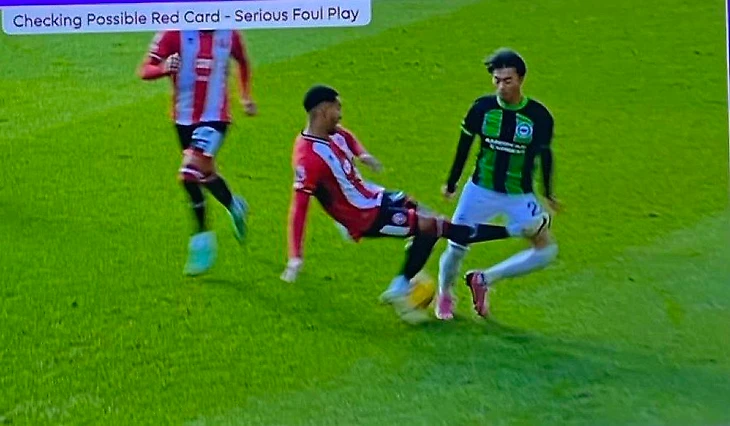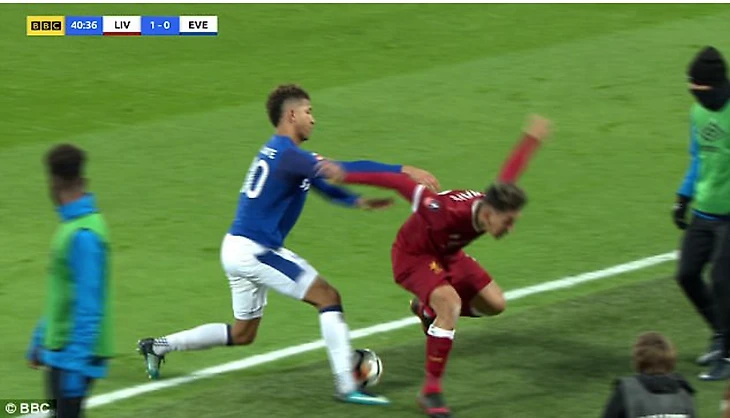 В сезоне-2019/20 толкнул Роберто Фирмино в спину, когда тот был уже за пределами поля.