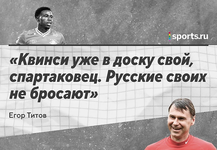 Егор Титов тоже не хочет, что Промес покинул РПЛ: «Квинси уже в доску свой, спартаковец. А как известно, русские своих в беде не бросают. Уверен, в беде его никто и не оставит, никто не станет экстрадировать. Еврокубков у нас сейчас нет. Минимум до лета. Да и потом вряд ли что-то изменится. Поэтому, на мой взгляд, Промес еще год может спокойно играть в «Спартаке», в России. А то, что он классный футболист, думаю, всем понятно. Квинси всем все доказал».