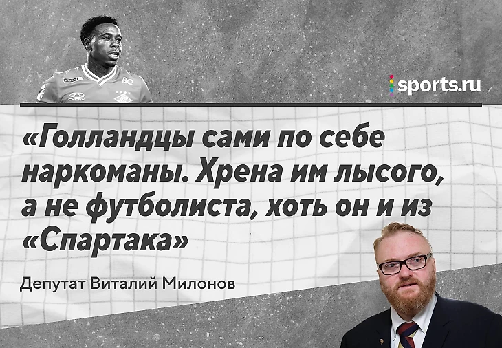 Виталий Милонов против нидерландских властей: «Я бы не стал так этим голландцам доверять, они сами по себе наркоманы уже давным-давно. Накурятся своей амстердамской шмали и мерещится им всякое иногда. Это вопрос «Спартака», им с этим жить, я был бы рад, если бы эти обвинения не подтвердились.