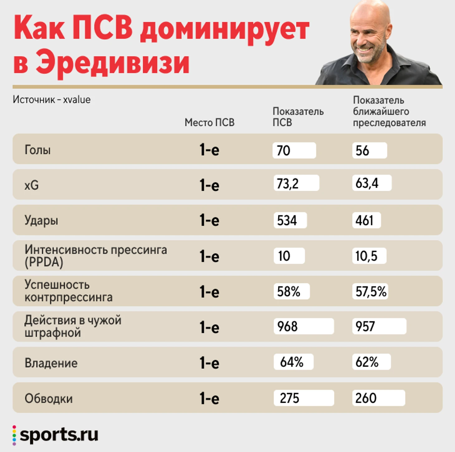 Изучив статистику чемпионата Нидерландов, я вообще не удивился доминированию ПСВ Боса по всем атакующим метрикам.