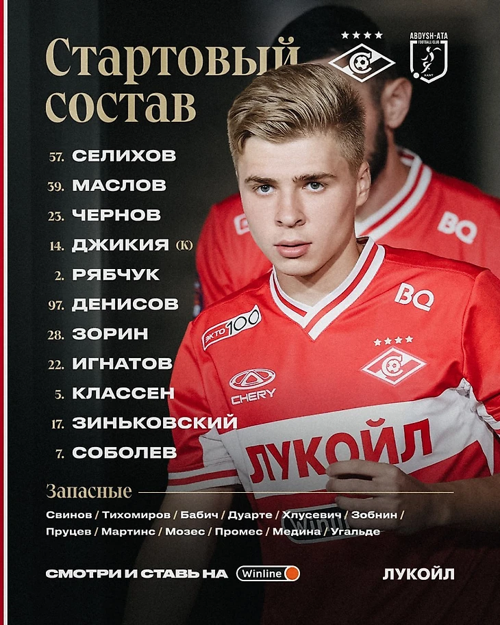 Стартовый состав московского «Спартака» на товарищеский матч с клубом «Абдыш-Ата»