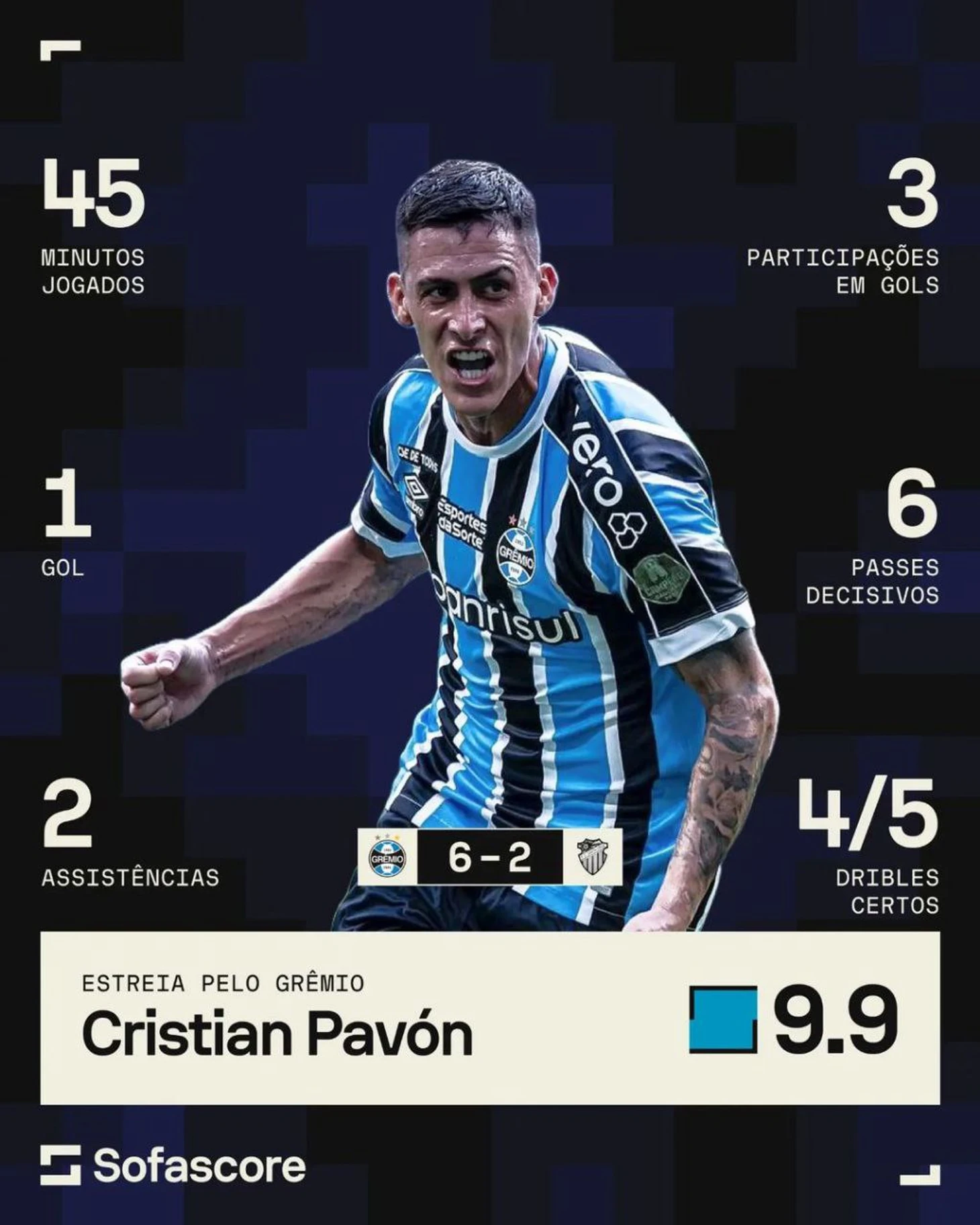 Перейдя в «Гремио» Кристиан Павон отметил дебют голом и 2 голевыми, а его новый клуб не оставил шансов «Санта-Крусу» 6-2.