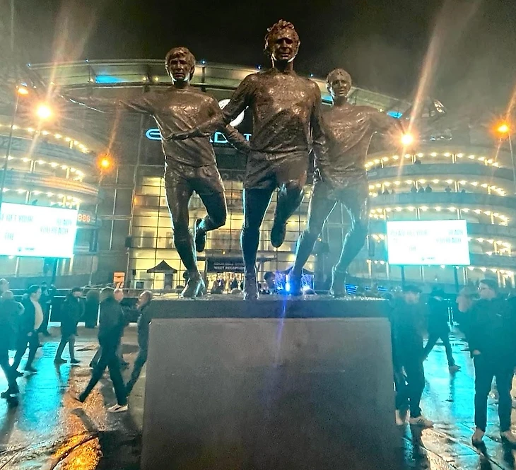 Памятник знаменитым игрокам золотой эпохи 60-х: Беллу, Ли и Саммерби. Серхио Агуэро здесь пока нет.