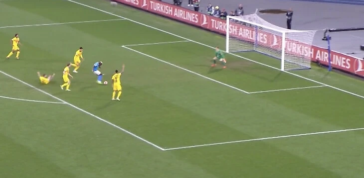 Открылся, получил пас перед защитниками и нашел момент для быстрого, хлесткого удара, когда двое были прямо перед ним. Все удалось, вратарь Алекс Мерет не дотянулся.