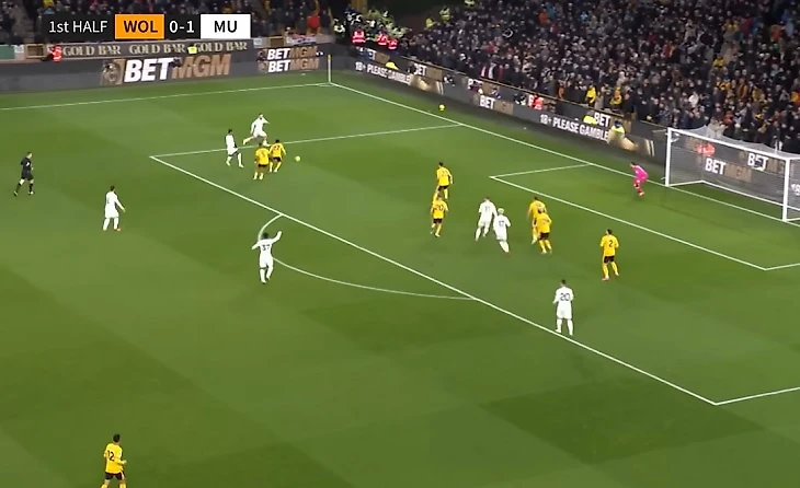 Шоу умно двигается и подстраивается. Здесь увел от Бруну защитника.