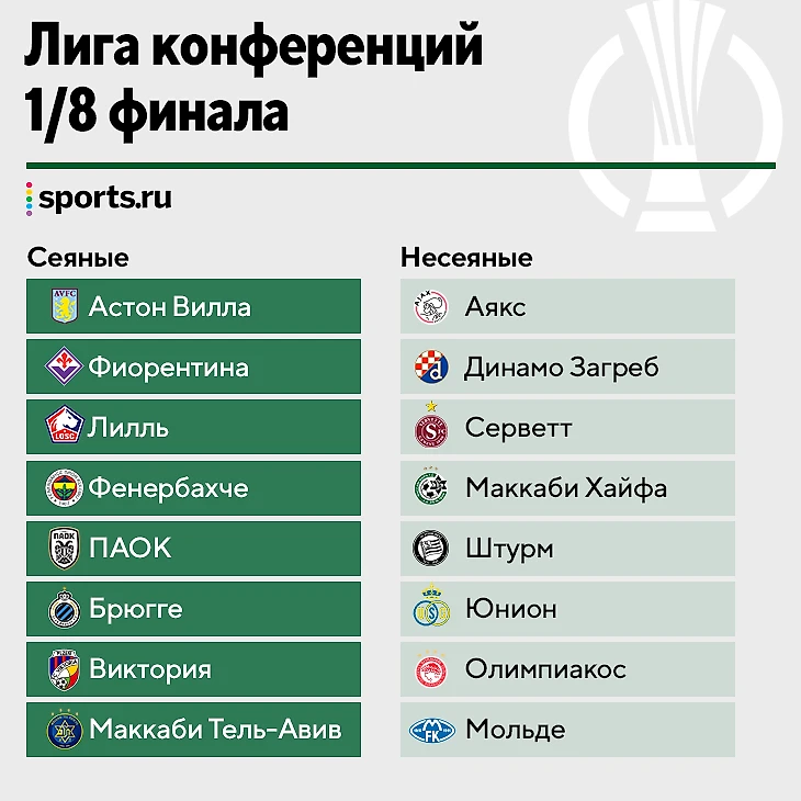 В Лиге конференций тоже интересно. Из топ-5 лиг остались лишь «Астон Вилла», «Фиорентина» и «Лилль». Могут быть неожиданности.