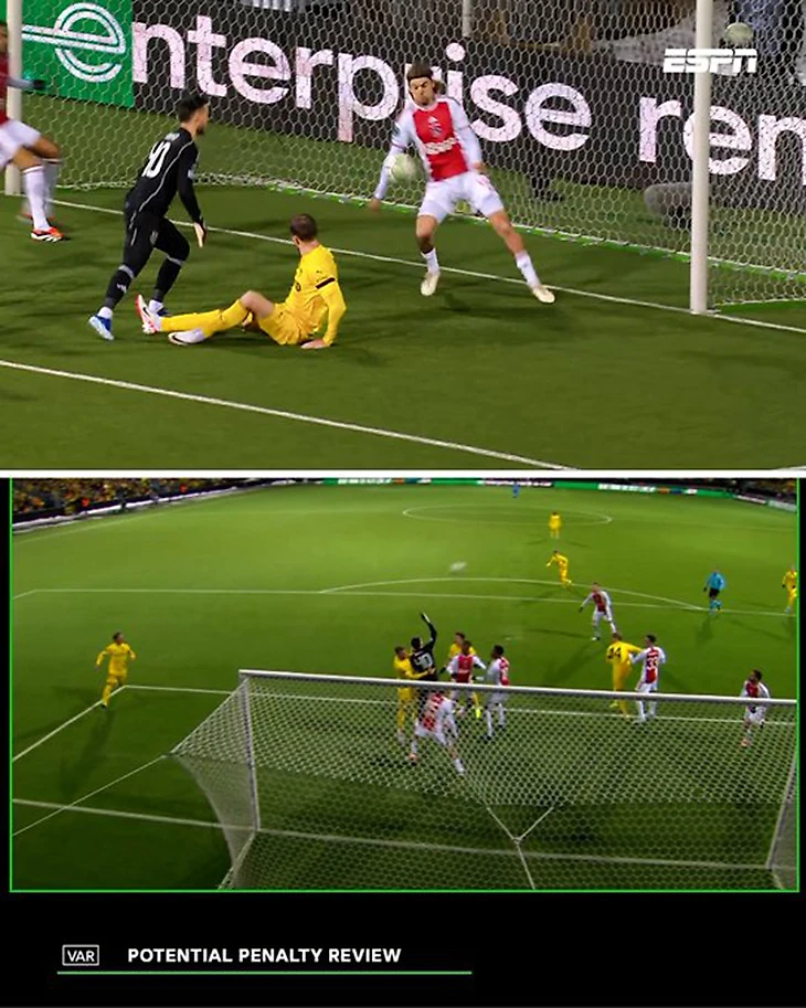 «Буде-Глимт» начал поджимать, «Аякс» держался чудом: например, Борна Соса вот так играл руками на воротах. Пенальти не дали – в атаке до этого был фол.