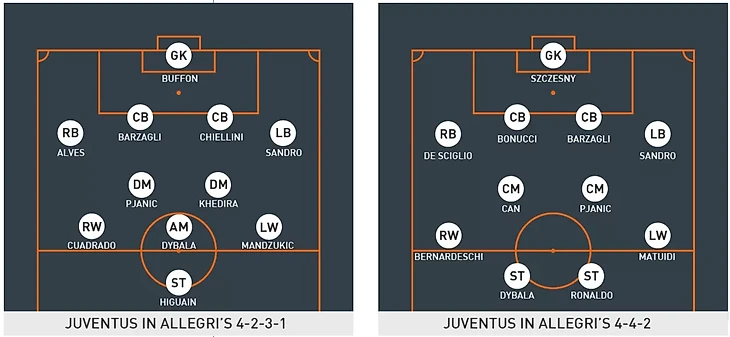 Умение вальсировать от 4-4-2 к 4-2-3-1, а также к 4-4-1-1 прямо по ходу матча сделали «Ювентус» образца сезона-2016/17 фактически неуязвимым.