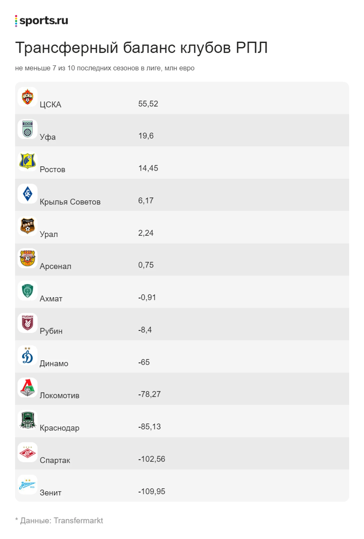 ЦСКА – лучший по балансу. У «Зенита» самый большой минус