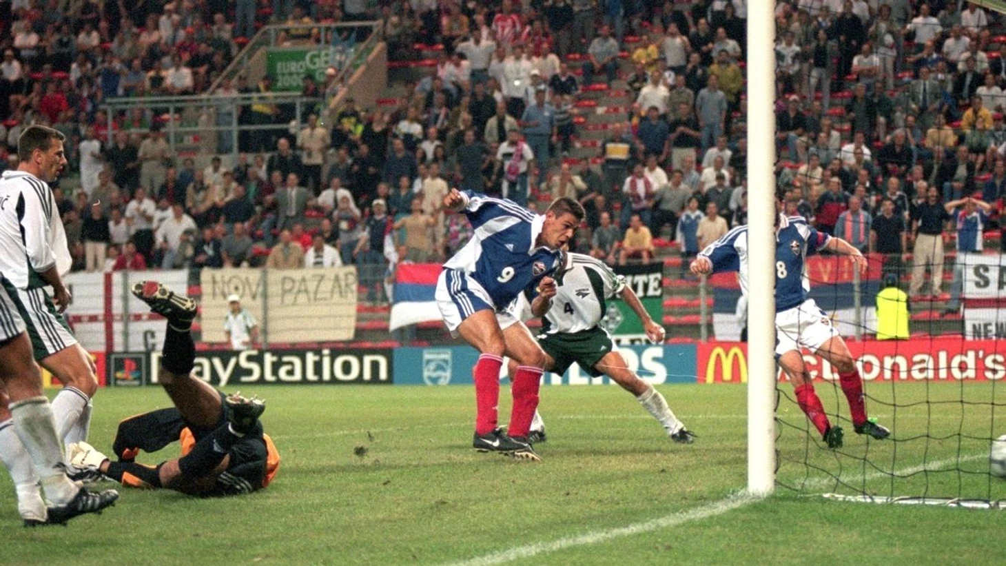 Югославы полностью провалили первую половину матча против соседей, которые без шансов громили сербо-черногорский коллектив. Все изменилось на 67-й минуте, когда Саво Милошевич положил начало словенскому разочарованию. Через шесть минут счет уже был равный. Сумасшедшие 3:3 со Словенией.