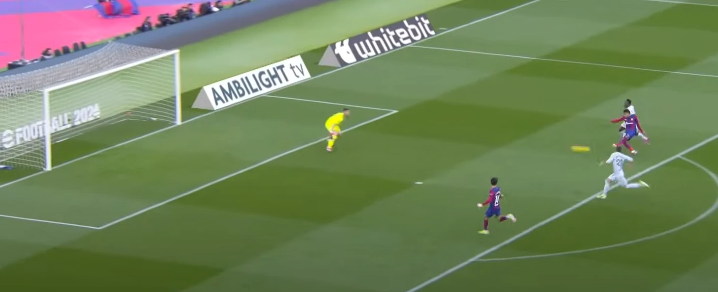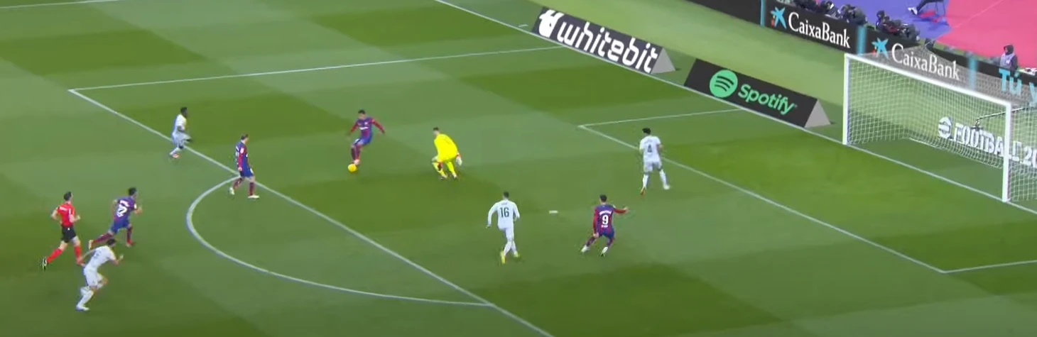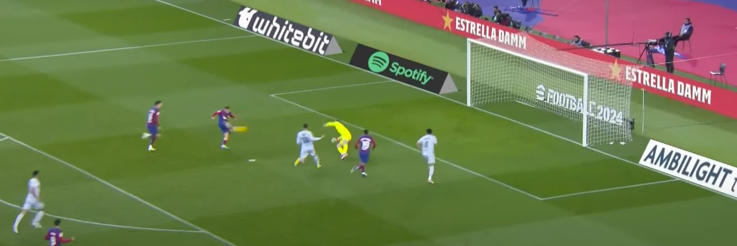 И уже на 20 минуте «Барселона» наказала оборону соперника за столь дерзкое тактическое решение. Кунде отдал невероятную передачу с правого фланга на ход Рафинье, который в свою очередь убежал от защитники и реализовал выход 1 на 1. Да, игрок Барсы забил выход 1 на 1. Чудо- не меньше!