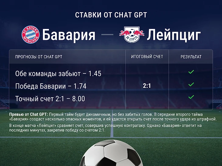 Chat GPT предугадал счет 2:1 в игре «Бавария» – «Лейпциг»