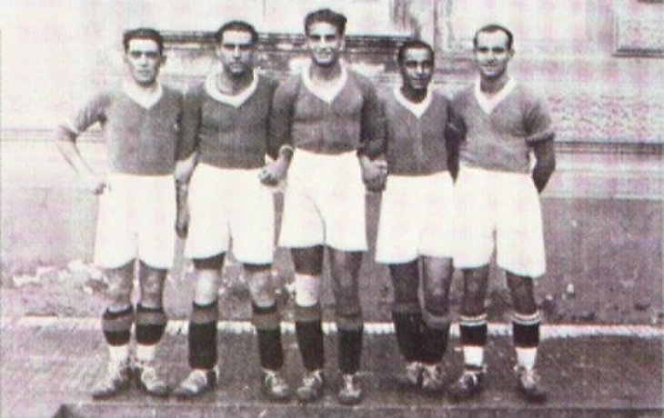 Аттила Саллюстро в центре с товарищами по команде « Наполи» в 1927 году
