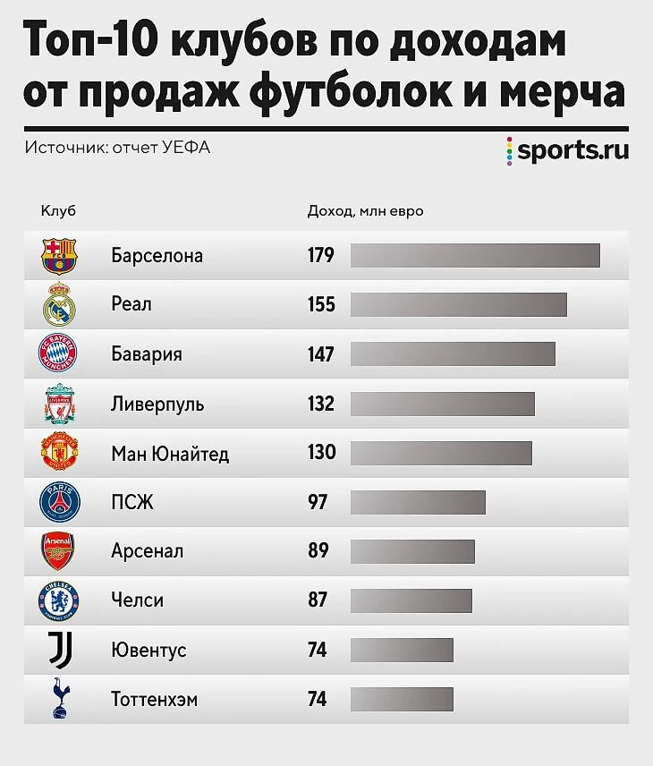 Однако, возможно, претензии «Барсы» небезосновательны. Свежий финотчет УЕФА показал, какой у клуба гигантский бренд и коммерческий потенциал. Там подсчитали, что «Барса» заработала больше всех на продажах футболок и мерча в 2023 году – 179 млн евро, больше «Реала» (155 млн) и «Баварии» (147 млн).