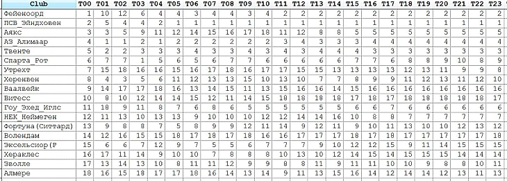 Чемпион Фейенорд - 2й Только 4й АЗ(4->4). А 3й – Твенте(5->3).