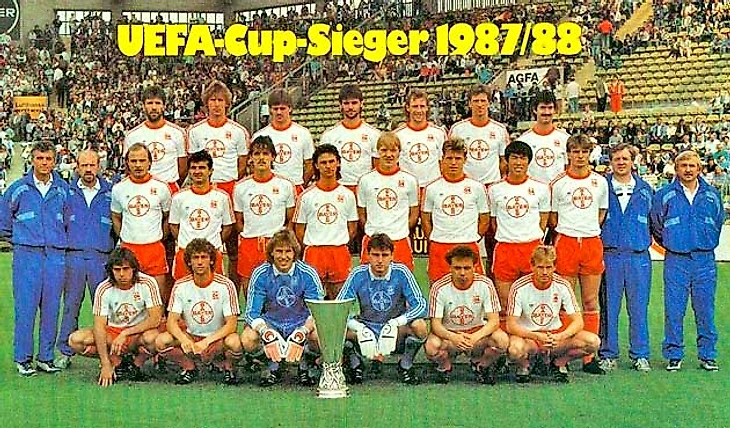Ранее это был Кубок УЕФА, а Лигой Европы он стал лишь с сезона 2009/2010. Кстати, это самый 1-ый трофей в истории «Байера», добытый еще во времена раздела самой Германии (объединение страны произойдет лишь 2 года спустя). Стоит также напомнить, что Леверкузен играет в элите немецкого футбола с 1979 г. Нынешний сезон для клуба юбилейный, 45-ый, а 1-ый трофей «аспириновые» добыли 9 лет спустя после выхода в бундесэлиту. Дата 18 мая 1988 г., вписана в историю клуба золотыми буквами: в этот день «фармацевты» в ответном финальном матче (тогда проводилось 2 финала) одолели «Эспаньол» со счетом 3:0. Однако все было не так просто, поскольку победителя пришлось выявлять в серии 11-метровых («Байер» проиграл в 1-ой встрече с тем же результатом), где удача улыбнулась немецкому клубу.