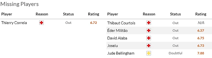 Ну а в рамках этого тура главный вопрос - это состояние Джуда Беллингема (8). Лучший бомбардир Примеры планировал восстановиться к этому туру, но вполне вероятно что его предпочтут приберечь для ответственного матча с РБ Лейпциг в Лиге Чемпионов. Кроме британца под вопросом вылет в Валенсию не совсем здорового Хоселу(7,5).